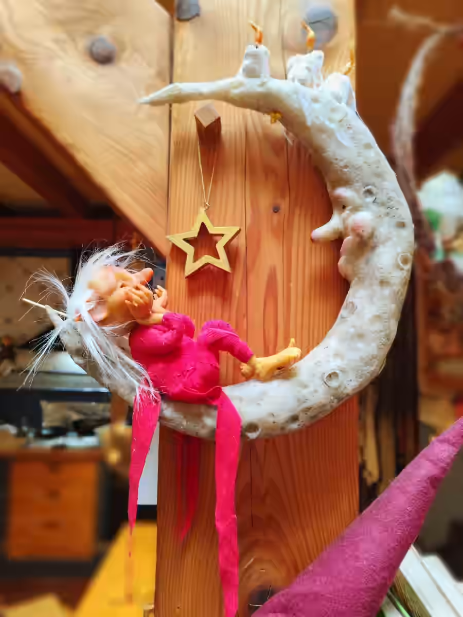 Si das vueltas en la cama sin poder dormir, este duendecillo aparece para arreglarlo. Experto en apagar pensamientos molestos y traer sueños reparadores.